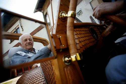 مدهش: سيارة فولكس فاجن من الخشب! المتقاعد البوسني "مومير بوجيك" يقود سيارة فولكس فاجن بيتل "الخنفساء"، المصنوعة من خشب البلوط داخل مدينة بنيالوكا في البوسنة والهرسك، و”بوجيك”، وقام بصنع المركبة عن طريق استخدام 50000 قطعة من الخشب، واستغرقت صنعها عامان. وقام "بوجيك" بتصنيع جسم السيارة وقبعة شخصية له من نفس الشكل، وعجلة القيادة أيضًا، فقد اهتم بأدق التفاصيل والخطوات حتى المرايات قام بتغطيتها بالخشب، إطارات السيارة تحمل نفس الشكل، ولم ينسى أن يحفر اسم "فولكس فاجن" بأحرف من الخشب بدلًا من المعدنية. |