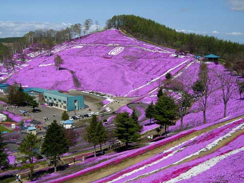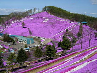 تعرفوا على حديقة بحر الازهار في اليابان حديقة هيجاشيموكوتو "Higashimokoto" في جزيرة هوكايدو هي موطن لما يقارب مليون زهرة وردية من نوع أزهار الفلوكس، موزعة على مساحة 100 ألف متر مربع. الحديقة تقع على إحدى التلال المطلة على مدينة تاكينو التي تزخر بمعالمها الطبيعية الرائعة، وهي وجهة عشاق الأزهار والورود حول العالم. هناك العديد من الوجهات السياحية الرائعة في جزيرة هوكايدو اليابانية، ولكن حديقة هيجاشيموكوتو هي أكثر المعالم الغنية بالألوان. في كل عام من بداية شهر مايو حتى منتصف يونيو تغطي التلال سجادة وردية من أزهار الفلوكس، المعروفة بإسم "shibazakura".المسارات المتعرجة توصل الزوار من قاعدة التلال إلى قمتها حيث يمكنهم الاستمتاع بمشهد رائع يشبه وكأنه بحر من الزهور الوردية. تأسست حديقة هيجاشيموكوتو في عام 1956 ، باستخدام علبة كاملة من بذور أزهار الفلوكس، وفي كل سنة كان يتم زرع المزيد من الأزهار فاتسعت بذلك مساحة الحديقة التي بلغ حجمها اليوم 100 ألف متر مربع. خلال موسم تفتح الزهور الوردية يتعطر الجو برائحة طيبة ليكتمل بذلك المشهد الرائع وتستمتع به جميع الحواس الخمس. وفي هذا الموسم يطلق السكان المحليون مهرجاناً سنوياً للزهور يتضمن عرض مختلف الأزهار وبيع الهدايا التذكارية والمأكولات المحلية الخفيفة.
