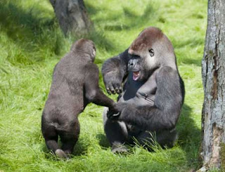 عناق بين “غورلتين” شقيقتين يثير دموع المصورين فى بريطانيا