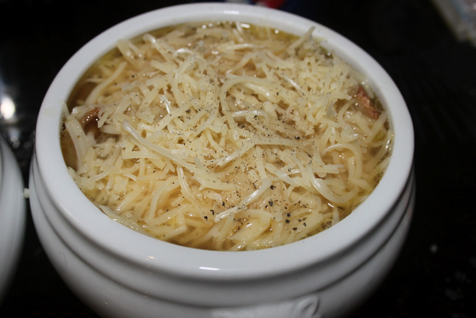 تلبية لطلب الغاليه نواره لكم طريقتي لاعداد شوربة البصل الفرنسية اللوازم 500غ بصل 70غ زبدة مالحة ملعقة أكل سكر ملعقة أكل طحين مكعب ماجي لاي مذاق : دجاج أو بقر وأنا أفضل دجاج 2ل من الماء زعتر وورق غار 200غ جبن قرييار(gruyere) ملح وفلفل أسود قطع خبز فرنسي الطريقة نقطع البصل لشرائح ثم حسب الصورة وعندما يأخذ البصل لونا ذهبيا ،نضيف الطحين والقليل من الماءوالسكر ثم ننقل الكل ونسكبه في قدر، ونكب بقية الماء نضع الملح والفلفل الاسود وورق الغار والزعتر ونتركه يغلي لمدة 45 دقيقة وطريقة التقديم كالآتي في أواني فردية نضع قطع الخبز ثم الجبن،وبعدها حساء البصل ووضع الجبن على الخبز يمنعه من الطفح على السطح ثم نعيد وضع الخبز والجبن مع زيادة القليل من جوزة الطيب ثم ندخلها إلى الفرن والنار تكون من فوق فقط وهذه النتيجة ![]() وبالهناء والعافيه أختي نواره أرجو انني وفقت في الشرح ![]() ![]() |