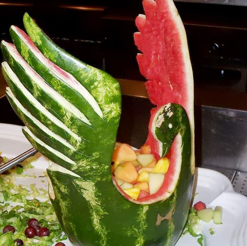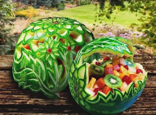 بالصور: مجموعة سلال فواكه مدهشة من البطيخ بعض سلال الفاكهة المعروضة هنا سهلة التحضير نسبيا ويمكن لأي شخص تقريبا أن يعملها. ولكن بعضها البعض الآخر معقد ويحتاج إلى الكثير من الموهبة والوقت. ويمكن عمل التصاميم بحيث تتناسب مع الحدث، سواءً أكان حفلة لرجال الأعمال حفلة اجتماعية للكبار أو للصغار ، أو مناسبة خاصة مثل مولود جديد أو عيد ميلاد أو تخرج أو عودة من إجازة، الخ.