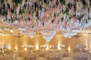 اروع استخدامات الزهور في قاعات الزفاف