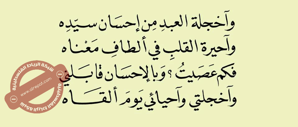 وَرَبكْ*رَاجِـحً بَالمُوازِيـنْ ..~ هُو عَالمً بِاللـےْ تكِـنْ الخَوَافِـےْ ..! وَبَالـ /*صَبِرْ*قَالُوّآ : لاَتصَبرتْ ثَنتِيـنْ .., * تَكسِبْ*جَمِيلْ*[ وَ ] تَاخِذْ*الحَقْ*وَافِـےْ ! وَالـ /*صَبِرْ*... مَفتَاحْ*الفَرجْ*وَأفتهِمْ زِينْ* مَاطَالـتْ إَلاَ وَالنهَايَـهـْ*عَوَافِـےْ*..~ وَالوَقتْ ... لَو جَارْ*وقَسَـے*يَرجَعْ يَلِينْ ..~ وَالـ /*حَظْ*... يصْحَـے لَوقَضَـے وَقتْ غَافِـےْ ..~ ومَاتقَدِمْ يَمِينِكْ تَرَى منكتِبْ "*دِيـنْ*" ..! وَمَاينكتِبْ*باللُـوحْ*لاِزِمْ يشَافِـےْ |
