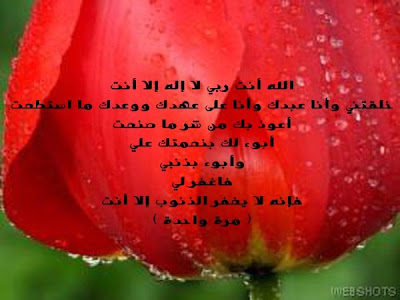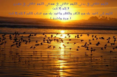 6:6 صبآح الورد * اللهم بك أصبحنا ، وبك أمسينا ، وبك نحيا ، وبك نموت وإليك النشور * ~ ْ ~ *اللهم فاطر السماوات والأرض ، عالم الغيب والشهادة رب كل شيء ومليكه ومالكه أشهد أن لا إله إلا أنت أعوذ بك من شر نفسي ، ومن شر الشيطان وشركه وأن أقترف على نفسي سوءا أو أجره إلى مسلم * ~ ْ ~ *رضيت بالله ربا ، وبالإسلام دينا ، وبمحمد صلى الله عليه وسلم نبيا * ~ ْ ~ *اللهم ما أصبح بي من نعمة أو بأحد من خلقك فمنك وحدك لا شريك لك لك الحمد ولك الشكر* ~ ْ ~ *اللهم إني أسألك العافية في الدنيا والآخرة اللهم إني أسألك العفو والعافية في ديني ودنياي وأهلي ومالي ، اللهم استر عوراتي ، وآمن روعاتي ، اللهم احفظني من بين يدي ومن خلفي ، وعن يميني وعن شمالي ، ومن فوقي ، وأعوذ بعظمتك أن أغتال من تحتي * |