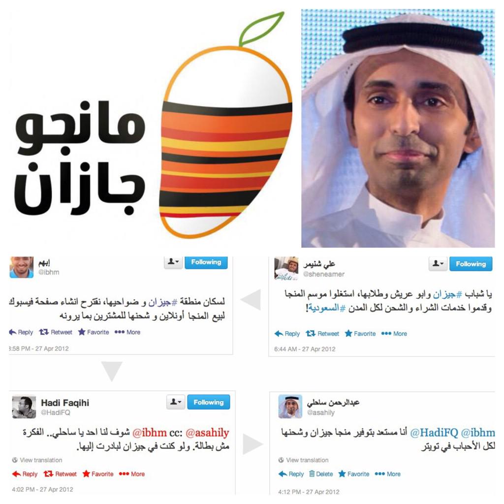 نشر علي شنيمر تغريدة عابرة على "تويتر" في 2012 تساءل فيها عن كيفية الوصول إلى مانجو جازان. فأشجارها تنتج أكثر من 27 ألف طن في السنة، لكن لا أحد يتذوقها من خارج المنطقة إلا لماما على الرغم من طعمها الحلو. التقط عبدالرحمن ساحلي التغريدة وعمل على ترجمتها إلى أرض الواقع. أنشأ متجرا إلكترونيا ليسوق مانجو جازان بطريقة غير تقليدية. فجاءت المبادرة لتقتنص الحلقة المفقودة من المعادلة وحولتها لمشروع إلكتروني لبيع وتوصيل فاكهة المانجو عبر الإنترنت.