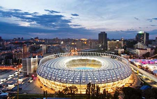 الملعب الأولمبي في أوكرانيا يعتبر واحد من أجمل الملاعب التي تقام بها مباريات يورو 2012. جمال هذا الملعب ليس في تصميمه المميز فقط ولكن في طريقة إضاءة المعلب والتي تزيد من روعته خصوصاً في الليل.