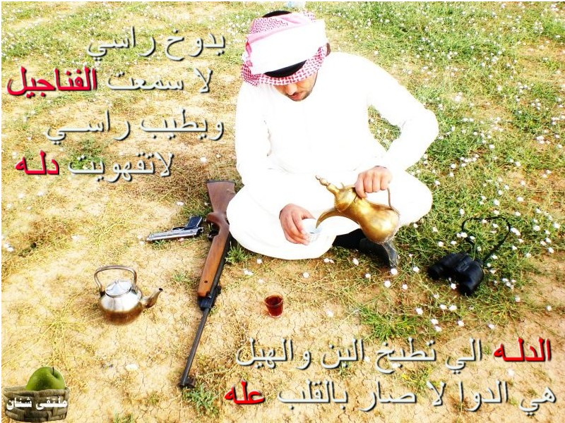 ![]() يدوخ راسي لا سمعت الفناجيل ويطيب راسي لا تقهويت دله الدله اللي تطبخ البن والهيل هي الدواء لاصار بالكيف عله !! |