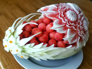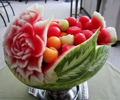 بالصور: مجموعة سلال فواكه مدهشة من البطيخ بعض سلال الفاكهة المعروضة هنا سهلة التحضير نسبيا ويمكن لأي شخص تقريبا أن يعملها. ولكن بعضها البعض الآخر معقد ويحتاج إلى الكثير من الموهبة والوقت. ويمكن عمل التصاميم بحيث تتناسب مع الحدث، سواءً أكان حفلة لرجال الأعمال حفلة اجتماعية للكبار أو للصغار ، أو مناسبة خاصة مثل مولود جديد أو عيد ميلاد أو تخرج أو عودة من إجازة، الخ.