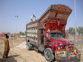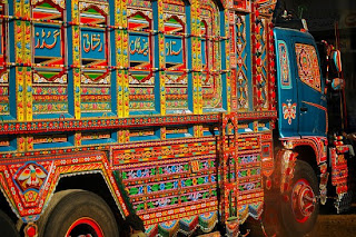 الشاحنات المنتشرة على الطرق في باكستان يتم تزيين كافة أسطحها بالعديد من الرسوم والتي يتم رسمها اعتمادا على ذوق سائق الشاحنة، البعض يطلب رسم صور أبنائه، وآخرين يطلبون صور بعض الشخصيات الشهيرة.. فيما يترك البعض الحرية للفنان لرسم ما يوحيه إليه فكره. ![]() وإلى جانب الرسوم توجد العديد من الحلي التي يمكن للسائقين استخدامها لتزيين الشاحنات، على سبيل المثال بعض السائقين يستخدمون سلاسل معدنية ملونة يتم وضعها بالأسفل لتعطي صوتا موسيقيا أثناء سيرها في الطريق، فيما يفضل البعض وضع مجسمات لحيوانات أو طيور على جانبي الشاحنة. وقد بدأ الرسم على الشاحنات كتذكير للسائقين ببيوتهم أينما كانوا، لكن في وقتنا الحالي فإن السائقين يزينون شاحناتهم بتلك الرسوم لأنهم يحبونها كذلك، كما أنهم يشاركون في عملية التزيين لتقوية ارتباطهم بالشاحانات، وقد حصل هذا النوع من الفن على شهرة كبيرة حتى أن هناك سيارات خاصة وأجرة يتم تزيينها بنفس الرسوم، وحاليا الرسوم الموجودة على الشاحنات الباكستانية معترف بها كنوع من الفنون الشعبية الرسمية. ![]() ![]() ![]() ![]() ![]() ![]() ![]()