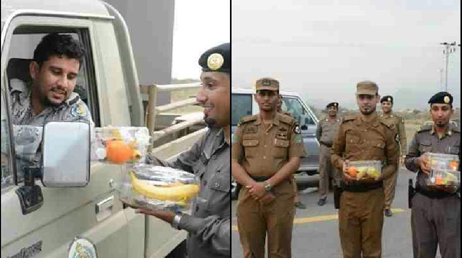 "شرطة جازان" توزع وجبات الإفطار على المرابطين بالحد الجنوبي (صور)